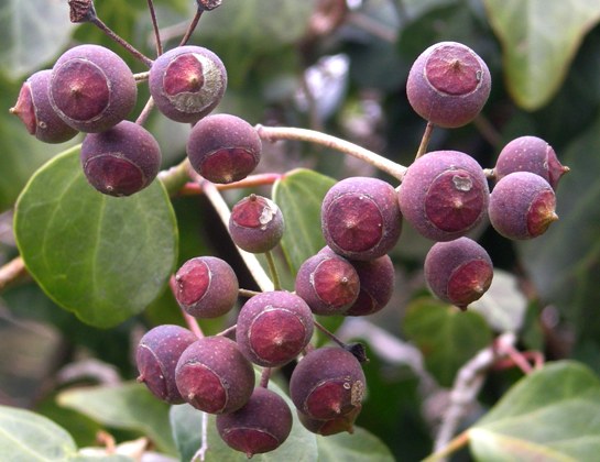 さぁ~てこれは何の実でしょうなんて言っても解らないですよね私も今日まで全く知りませんでしたネットで探してもなかなか見つかりません木の実なんですがそして良く見る、知っている木なのですがこんな実を付けるなんて思っても見ませんでした葉っぱを見ればなぁ~んだって言う声が聞こえそう[ オカメヅタ ]そう、ウコギ科キヅタ属の「オカメヅタ」観葉植物としてお馴染みの蔦今まで実を付けているのを見た事がなかったのでお花が咲いたり実を付けるなんて思いもしなかったのだから今日見つけた時にはビックリ[ オカメヅタの実 ]ウコギ科なので「ヤツデ」のお仲間 ↑ ココをクリックお花は「ヤツデ」のお花に似ているそうなこんな面白い実を付けることがわかって嬉しい別名「カナリーキヅタ」北アフリカのカナリー諸島原産のつる性の植物今では六甲山系を初め自生しているのを良く見る冬でも青々とした葉っぱが嬉しい花言葉は「友情」、「信頼」