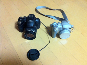 届きました例のヤツが嬉しさのあまり・・・新旧並べて撮ってみる結局購入したのは、富士フィルムの『Fine Pix HS10』最後まで悩んだのは、ついこの間まで使っちょったヤツの後継機種。Canonの『Power Shot SX30IS』決め手『その1』電池が単3x4本じゃったこつ。Power Shotは、この機種から専用バッテリーになった。専用バッテリーは、一長一短あるけんどんが、オレにとってはマイナス査定決め手『その2』10コマ/1秒の高速連写対するPower Shotは、1.3コマ。これまで使ちょったヤツも連写が前々ダメじゃった。決め手『その3』動体キャンセル機能建築物を道路の対面側から撮影する時、シャッターを押した瞬間に車が入ったり、人が歩いたりする場合、この機能を使えば、その動いたものを除去出来る。決め手『その4』価格Power Shotも充分魅力的じゃったけんどんが、1万円以上の価格差を埋めるほずでん(ほどでも)なかった。以上、総合的に勘案して選択した機種じゃが、専用ケースと一脚も併せてお買い上げ三脚は当然、持っちょったけんどんが、一脚も欲しかったとですいろいろと触ってみて早く使いこなしたいけんどんが・・・取説を読むのは・・・よだきぃ~(メンドクサイ)因みに、購入先はデジカメオンライン安いヨ