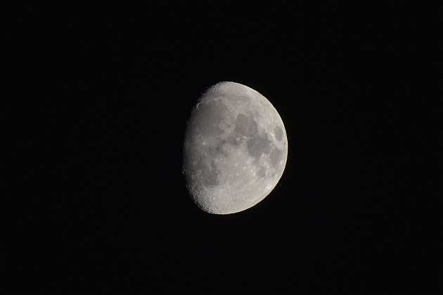 8時前 南の空にお月様 今夜は雲がないので綺麗に見れた