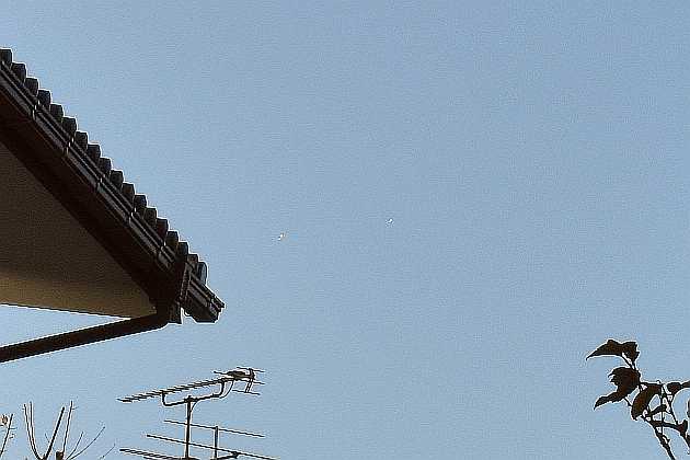 家にもどり 西の空に 銀色に輝く 2つの飛行体が ヘリかもと見てた