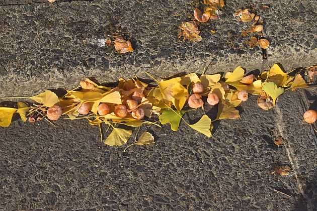 銀杏の木の下は 落ち葉と銀杏の実が多くなった もう秋はお終いか