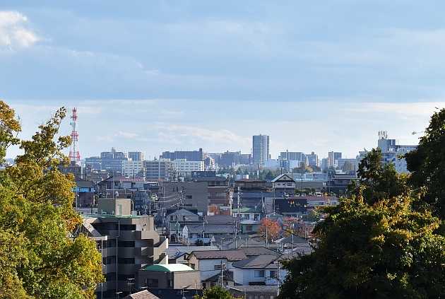 団地の外周道路に この時点で2000m突破 仙台市街を見て一休み