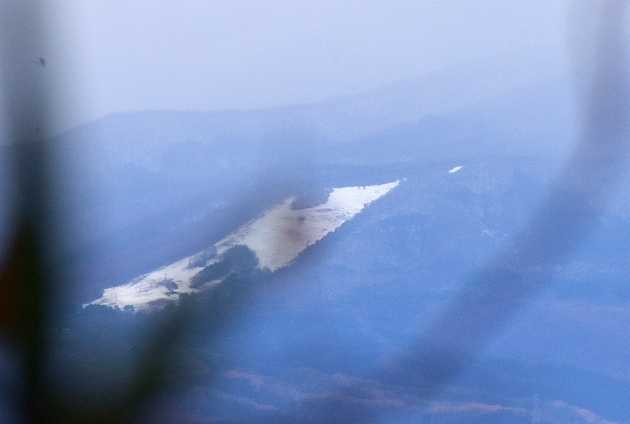 立入禁止で登れません なので木の隙間から 泉ヶ岳スキー場