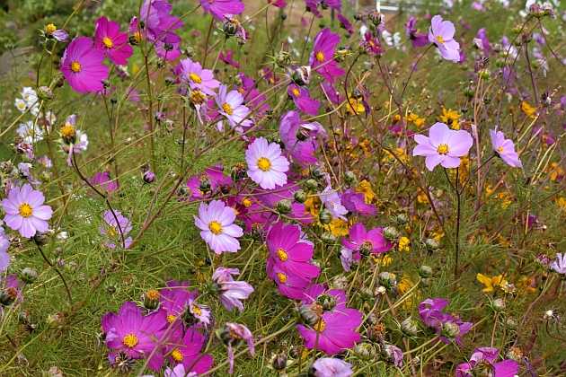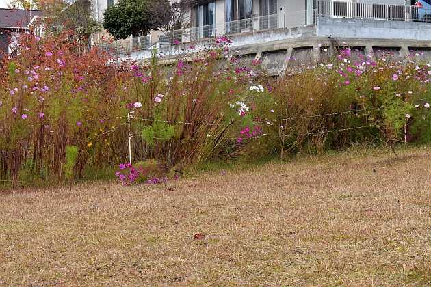 坂道の公園では芝生は冬 でも コスモスが綺麗に