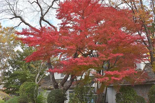 家の外周道路のモミジがようやく見頃に 今年は遅い