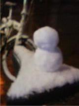 広島は(特に市内は)雪がめずらしいのです。とんしゃんは、寒がりの暑がりなので、寒いのはいやなんですが雪は好き~~~~~っ!昨日はめずらしく、天気予報に「吹雪」なんて言葉が・・・おかげさまで、夜の会議が短縮になり課会の後、いつもある係り会は中止という素晴らしさ!毎日雪が降ってくれぇ~~~!家に帰ろうとすると(吹雪なんてものはなく、ただ雪が降ってるだけなのだが)駅前で(赤の他人の)長男が走り回っている。とことこと近づいて、「何やってるの?わぉ!雪だるまかい!」手のひらに載せた小さな雪だるま。 さらに走り回って何してるのかと?駅前に不法に駐輪している自転車のサドルの上に雪だるまを鎮座させる「誰の自転車かわからないっすけれど、いいですよね」「もう雪だらけなんだから、かまわないでしょ」「シャメしたいから、作ったんっすよ」携帯取り出して、撮影始める長男。ならば、私も! 便乗して撮影させてもらいましたのよ。雪の中の、雪だるま撮影会です。わっはっは。「一応、この携帯、防水なんで・・・」わ!・・・・・とんしゃんのは、違う!あわてて、撮影中止したので、ボケボケの一枚だけ。(なんて、とんしゃんの写真はいつもぼけボケじゃわん!)え~~~ん。(涙)でも、20才の男が雪だるま?3人息子の中で、この子が一番、とんしゃんの性格に似ているかも?