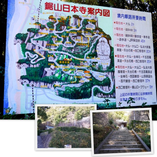 今日も…ってもう真っ暗Σ(・ω・ノ)ノ!……昨夜が降ってね 結構凄い雨だったから今日は冷えるのかな…って思ったけど 最高気温が12度と過ごしやすい日です(*'▽')プチ旅行その3です!!いよいよ~鋸山に挑戦(笑)鋸山ってロープウェイと有料の登山自動車道に無料の観光道路と…前日の夜のチェックで知ったんだけどね(;^_^A他に…1/19追記!登山道を歩いて登るの4通りの登り方ができます♪…登山道は何種類かあって…詳しくはこちら 比較的歩きやすい道や 凄く危険な道とか…数コースあり!! この歩いて登るハイキングコースで遭難者とかが出たりするんだろうね… 歩くとね 見どころが数か所有るそうですよ~ 比較的楽なコースもある程度の装備は必要だそうです! 登山マップは浜金谷駅とかに置いているそうです♪で じぇりねこ母娘は無料の観光道路から入りました♪こちらは千葉鋸山 乾坤山 日本寺の境内になるんです でね各入口に管理所があって拝観料600円を払って入山するの(*'▽')下右写真のが東口管理所今回こんな経路で中を回りました(*'▽')赤矢印と下りが青矢印♪入口を入ると目の前に大黒堂があって先に左に折れて薬師本堂(右下)と乾坤稲荷神(左下)にお参りしました(*'▽')乾坤稲荷は荼枳尼天を祀っていました♪それから~大仏広場に…東口からは大仏広場は直ぐ近くなので階段もそんなに無くて楽ちん♪階段も整備されてるし歩きやすい!!…ってこの時は思ってた私…※注意!!(笑)鋸山にはおトイレが大仏広場に行く前にある1か所しかないのでここで用を済ませておかないと他が無いので危険(@ ̄□ ̄@;)!!で~大仏様にお参りを済ませて…寺務所…地図には売店って書いてあるが(笑)…で御朱印を書いて頂きました♪日本寺はね関東九十一薬師霊場の91番目の札所で専用の御朱印帳があると薬師如来の御朱印も書いて頂けるんだけど…私は持ってないので頂けませんでした( ノД`)シクシク…御朱印を頂いたのでいざ出発!!大仏前参道は緩やかな坂道だから歩きやすくて良かったんだけどね最初の石仏群に向かう階段を登ってたら足が上がらなくなってきたのよ(@ ̄□ ̄@;)!!…運動靴履いてたのよ!!自分でも健脚だと思ってたのに歩くのと階段を登るのでは使う筋肉が違うのね(;'∀')…上に登る道の山壁には石仏だらけΣ(・ω・ノ)ノ!いったい何体の仏像様がいるんだろう…(;'∀')……大野甚五郎英令が21年間 門徒27人と生涯をかけて彫刻した石仏『東海千五百羅漢』だけで 1553体有るらしいから…どんだけあるのやらです(;^ω^)もうもう山際には大小の仏像様だらけでどのお顔も特別なものでなければ似たようなお顔なのよ…(゚д゚)!お顔の欠けたのも沢山あってね…正直…結構怖くなってきました(;´Д`)…そんな中観音様は優しいお顔なのでここを通った時はホッとしたわ~(笑)ここで紹介した写真の他にも沢山写したんだけど…有りすぎるので石仏写真は割愛しました~('◇')ゞ階段だらけの道を無言でやっとの思いで登って(笑)辿り着いた山頂展望台!!高所恐怖症だから崖際には足が竦んで行けなかった…Σ( ̄□ ̄|||)…でこれが有名な地獄のぞき!!黒っぽい上着を着て後ろで順番待ちしてるのが娘( *´艸`)…娘は平気らしい…(;^_^Aここから今度は下がって…岩肌に彫られて百尺観音様をお参りしました♪見上げると!!例の地獄のぞきが(◎_◎;)…もしあそこに居る時に地震があったら絶対危険だよね!!あの場所を見ただけで私は絶対無理!!!!!!って思いながらこの場所を後にしました(笑)地図には載ってないんだけど…今 新しい本殿とか作ってました(*'▽')なんか立派なのができそうですね♪鋸山は結構TVでも紹介されてて有名なスポットだけど兎に角中は階段だらけでね整備はされてるけど登っていくのは細めの階段だし特に危険な場所には柵が付いてるけどほとんどは柵なしなの(@ ̄□ ̄@;)!!強風が吹いてる時とか…小柄な人や子供は凄く危険だと思います(/ω\)それに小さい子は柵のない所とか絶対危険!だってね緩やかな斜面じゃないんだもん(;^ω^)高所恐怖症のじぇりねこは山側にへばりつくように階段を登ってました(笑)結構頑張って回って2時間…かかったわ(;^_^Aん~~~腰の悪いパパには無理(笑)娘と行けて良かったと思ってます( *´艸`)話は変わって~今年の初詣に行く上の娘に着せた小紋!私の若いころの着物です♪今回仲良しさんも小紋を着る!って聞いたから娘にも小紋を着せました(*'▽')…でもね帯揚げ出すぎ(@ ̄□ ̄@;)!!後で写真を送ってくれたからもうちょっと閉まって!!って連絡(笑)髪は娘が今ボブにしてるから無し!(笑)でね自分の着た写真を探したら…札幌なのでコート着てたΣ(・ω・ノ)ノ!草履も雪国仕様です( *´艸`)…30年以上前の懐かしい写真でした(笑)ではでは~麿ちゃん空ちゃん前回同様に麿ちゃん空ちゃんのチェックの様子( *´艸`)年末に上の娘から届いたA5のお肉♡麿ちゃんチェック!入りました~ヾ(≧▽≦)ノクンクン!牛肉なら火を通しただけのを貰えるものね(*^^)vしつこく~クンクン!クンクン!してた麿ちゃんでした( *´艸`)お正月に娘