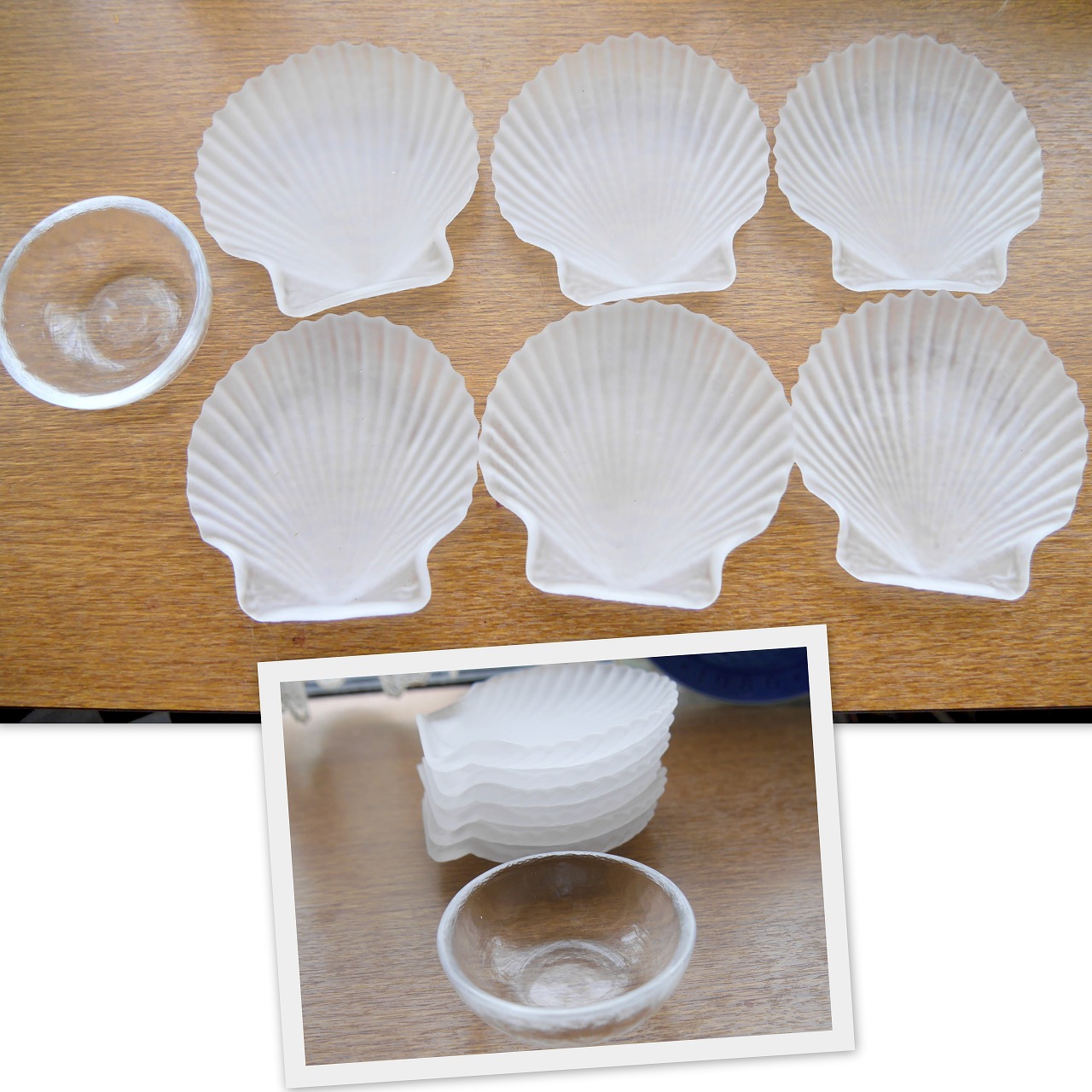 すりガラスのホタテ貝型の小皿を6枚買ってきました(*^^)v