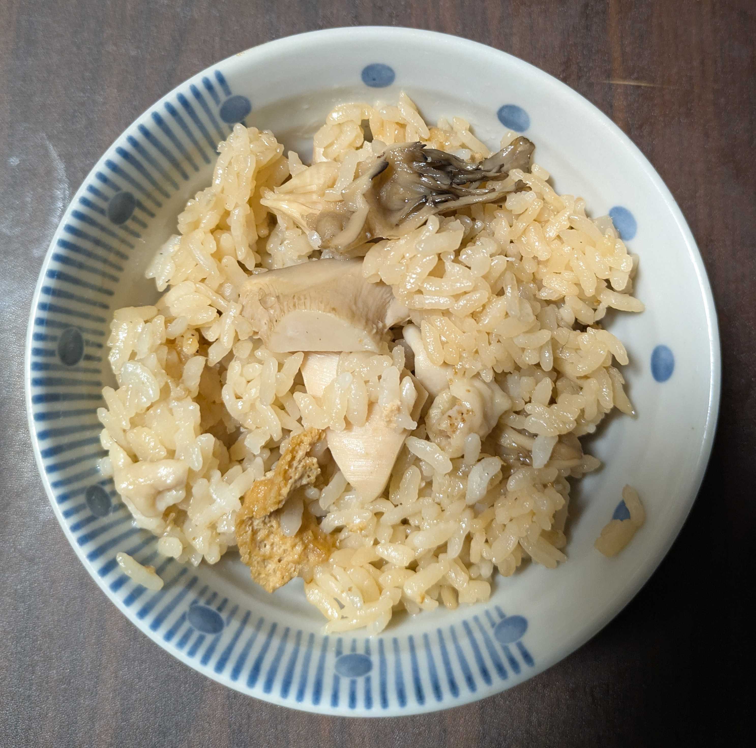 男料理(夕食)舞茸の炊き込みごはん 舞茸 油揚げを入れました 男料理(夕…