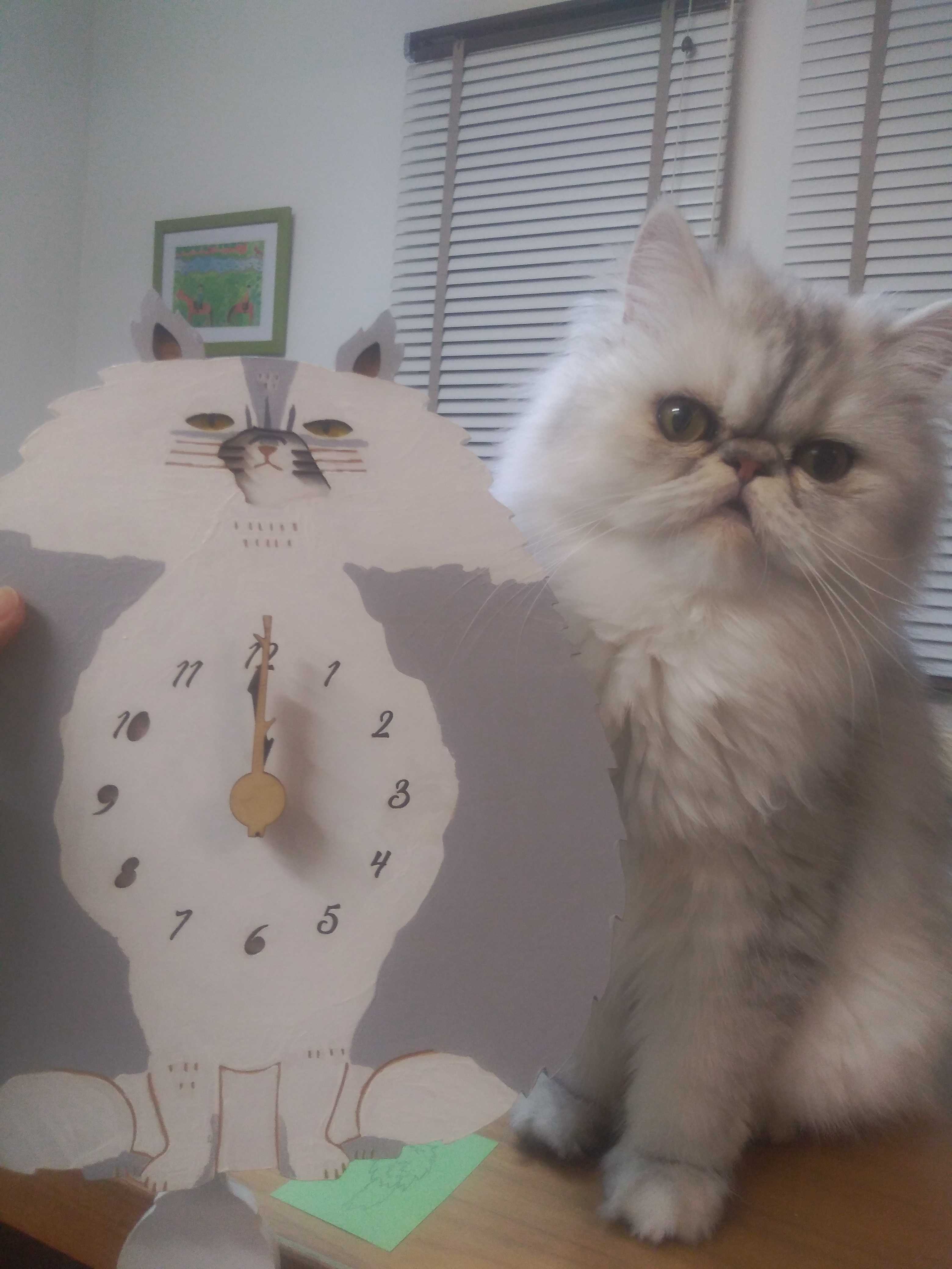先日、うちの子猫のオーダーメイド振り子時計が自宅に届きました~並んでみると、とってもかわいいですこの振り子時計、何気なくみていた「Creema Spring」さんのクラウドファンディングで募集していたのを目にとめて、ちょうど部屋の時計を欲しがっていた娘に見せたら「欲しい~~」となったので注文しました。申し込み後の流れはこんな感じ。製作者の方からメールが来る→私:うちの子猫写真何枚かをメール送付→完成イメージ写真が製作者の方かた届く→私:ちょっとだけ修正をお願いする→修正イメージ写真が届く→私:これでOKなので、完成までお願いする→完成と発送の連絡がある→私:受け取る発注から到着まで数か月とありましたが、実際には1か月半くらいで自宅に届きました。ペイントの部分も凹凸があって、手作りの温かみのある時計。しっぽもついていて、そのしっぽがフリフリしているのでとっても可愛く、娘はとっても気に入ってすぐに部屋に飾ってました フリフリの様子はインスタにアップしてます→しっぽフリフリ私が利用したクラウドファンディングは終了してしまってますが、お願いした製作者の方は猫ちゃん以外にも色んな動物の時計などを作られているみたいなので、興味がある方はぜひ Creema:Cinematic Forest