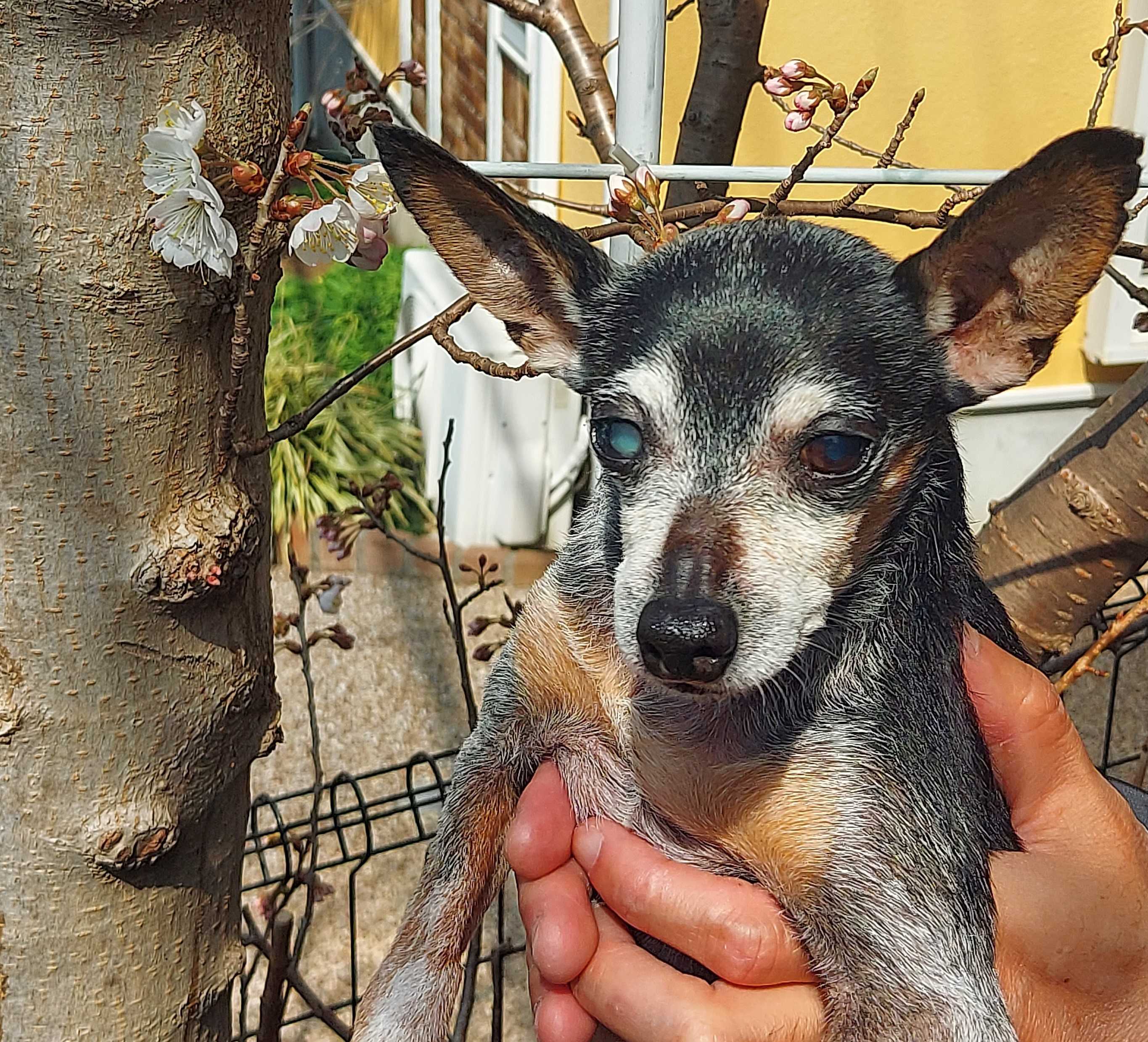 ようやく暖かい日が増え、春らしくなってきましたね。ジョウは無事に16回目の春を迎えることができ、あと5か月で16歳になります。今の所、大きな病気はありませんが、歯周病の炎症の影響か老化かは分かりませんが右眼の白内障が進行し、光にあまり反応していないようです。現在は残った左眼を守るため、目薬とサプリを継続しています。サプリははじめ、ネットで「ブルーベリーとルテイン」犬用の物をあげていました。獣医さんに聞いたところ、ルテインは水晶体を守る効果があるようですが、ブルーベリーはあまり効果がないようです。もし、白内障予防のサプリを選ばれるなら、ルテイン入りを選びましょう♪来年もジョウとまた桜が見れますように。そして、すべての人、生き物が穏やかに、平和に暮らせる世界でありますように。