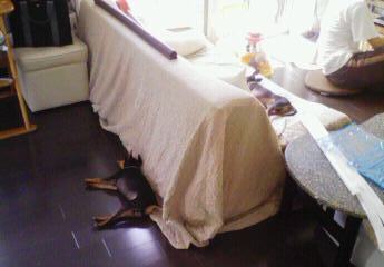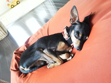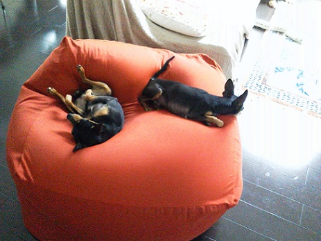 もう9月に入ったというのに毎日ほんとに暑い日が続いています。にもかかわらずうちのワンコたちは元気なのですが、さすがに昼間はお外に出ようとしません。ジョウは風通しの良い玄関にいることが多く、パッチはソファーの上で仰向けで寝ていることが多い昼間です。ある日の昼間はこんな感じで↓↓↓育児中のジョウママはこんなワンコの姿を見てホッと一息つきます