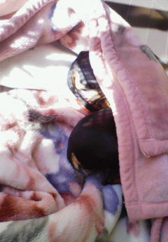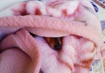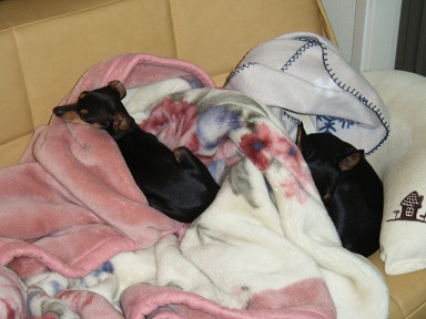 最近、急に寒くなりましたジョウとパッチは毎日床暖の上で毛布に包まっているのですが今日は・・・2ワンコそろって「頭隠して尻隠さず」おねんねです