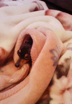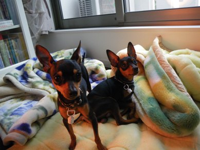 とっても寒い日が続いています。朝はとくにつらい時期になりました新年の独特な雰囲気も過ぎ去り、気が付けばまた半月が過ぎました。我が家のワンコは変わらず毛布にくるまっております↑毛布の下のふくらみにジョウ先週末、ジョウとパッチの8種混合予防接種へ行ってきました。診察時の体重測定では・・・ ジョウ 2.7キロ パッチ 1.8キロジョウの体重は増加し、パッチは減少・・。特にごはんに差があるわけでも、横から盗み食いするわけでもないのにどうゆうことなのか・・不思議です診察では、パッチが最近左後ろ脚をビッコをひくことがあることを説明し診てもらいました。結果、以前より右後ろ脚の膝関節が悪いのでその影響だろう・・とのことでした。とりあえず経過観察となりましたが、心配なジョウママです。