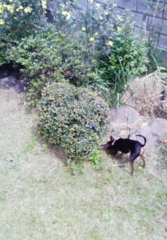 最近、とても寒暖の差が激しいのでお家の皆が体調をくずし気味ですが、元気いっぱいのジョウとパッチです。先週末にはジョウママの里帰り出産のため、淡路へ来ています。この春と初夏まではこっちで過ごすワンズと坊とジョウママ。残念ながらジョウパパはしばらく川崎での一人暮らしですが・・。相変わらずこちらは田舎なのでのんびりしていて、お庭も周りの環境も緑が多くてワンズや坊はお庭で走り回ったり珍しい虫を見たりして楽しんでいるようです。パッチはこっちにくるのは2回目ですが、すっかりなじんでいて今日も蝶を追いかけてみたり、カタツムリを見つけてくわえて遊んでみたりと満喫しています。ジョウはもうなれているお家なのでマイペースに過ごしています。探検するパッチ。茂みのなかにもグングン ワンズたちとつかの間ののんびりを楽しむには今はいい季節です