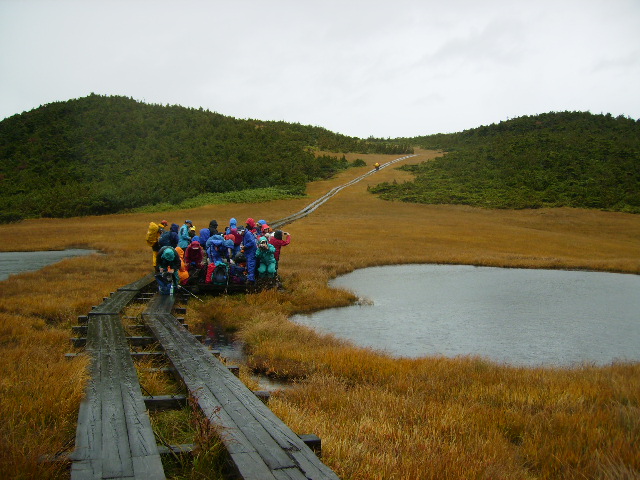段々傾斜が緩むと熊沢田代の湿原に出る