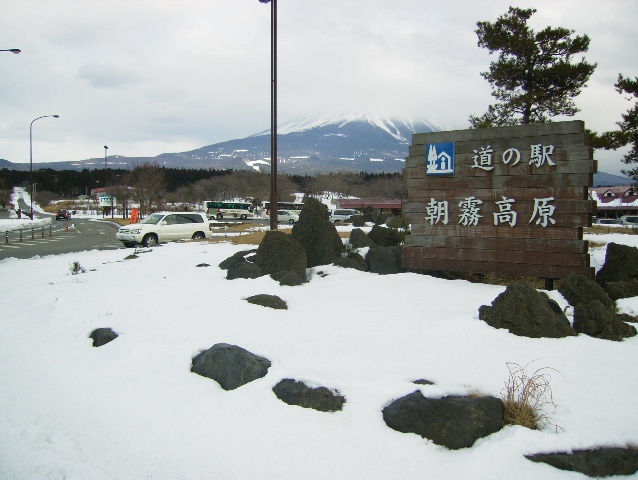 富士の裾野は雪景色、 15センチ位だが 慣れない足には重い雪
