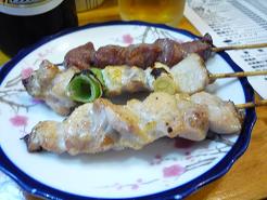 2年近く続けてきた菜食中心の食事ですが、この度、肉食を解禁することにしました。骨粗鬆症(こつそしょうしょう)を予防するためには、ある程度、肉を摂ったほうがいいと聞いたからです。さっそくやきとりを食べに行きました。野菜焼きの項でも書いたとおり、ここ1,2年、近辺に大衆的な串焼きが何軒かオープン。乱立で共倒れになるのではないか、と他人事ながら心配になるほどです。 そのうちの一軒で食べたやきとり。塩焼です。肉も野菜も塩のほうがビールや焼酎に合うのでたいてい塩で注文します。 別の店での串焼き。これは見たとおりタレです。いずれも1本100円前後ですから、安価なおつまみでしょう。 ちなみにこの店が目下のところ一番のお気に入りです。立ち飲みで現金引き換えですから、財布にやさしい焼鳥屋といえるでしょう。 骨粗鬆症=骨を形成している組織が吸収され減少しもろくなった状態。老人や閉経後の女性に多くみられる。他に局所の循環障害、カルシウム代謝異常などでもみられる。