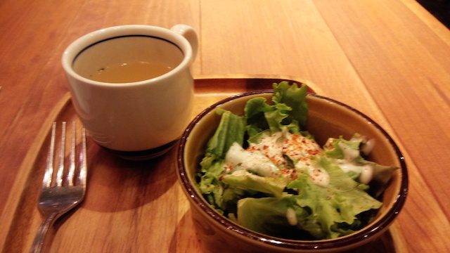 リゾット,ドリア,パエリアなど、年寄りには違いがわかりません。 美味しければなんでもいい、という大雑把な江戸っ子。 グルメとは、ほど遠い存在でしょう。 それでいいのです。 田舎者ほど能書きが多いものですから。 夏野菜と温泉玉子つき、キーマカレーのパエリア。 ランチタイムなので、サラダとスープ,ドリンクがセットに。 先にスープとサラダ来ました。 これがサービスの基本でしょうか。 スープはコンソメ。 三つ葉らしきものが、若干,散らしてありました。 サラダは,多分,サラダ菜です。 シーザードレッシングがたっぷり。 葉っぱを食べているような感触でした。 これがキーマカレーのパエリア。 夏野菜は、なす,ピーマン,パプリカなど。 真ん中に温泉玉子がドカーンと。 非常にスパイシーです。 こびり付いたおこげを、フォークで削るようにしていただきました。 完全には削れませんでしたが(笑) ドリンクもついていたので,マンゴージュースを。 全体に若者,特に女子向きの味でしょうか。 インテリアも,女子向き,と感じました。 おじさんも,いることはいましたが,私も含めて,浮いていました。 自意識過剰かなあ。 コスパはいいかもしれません。 デート向きで、親父一人ではちょっぴり勇気が。