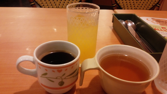 イタリアンのファミレスへ行ってきました。 ランチタイムなので、店内は満員。 4人掛けのテーブルが空いたのでそこへ。 メニューと睨めっこの末,カレードリアとドリンクバーを。 ランチセットで,サラダとスープがついています。 ドリンクバーは、不用だったかな。 サラダが先に来ました。 レタスとコーンが中心です。 イタリアン風の濃いドレッシングがたっぷり。 スープはセルフサービスです。 メーンのドリアは、こんがりと焼き目が。 オーブンでじっくりと仕上げたようです。 カレーはスパイスが利いています。 安いので期待していませんでしたが,まあ普通の味です。 何と言ってもCPが最高。 混んでいるので,店内は騒がしいですが、 牛丼チェーンより落ちつけます。 店舗の数が少ないのが残念。 ナビで探して、他の店にも行ってみたくなりました。