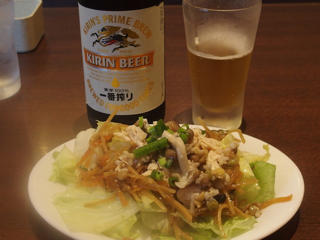暑くなると,現れるのが冷やし中華。 これにも、いろいろバリエーションがあるようです。 発祥地も諸説あるようですが、それは省略。 今回訪れたのは、ルミネ新宿の7階です。 何回か通っていますが,今日は冷たい麺を食べることにしました。 大きなメニューを広げて検討。 結果,「牛ロースと夏野菜の味噌だれ冷麺」に決めました。 待つこと10分少々。 やってきました冷麺が。 おお、スープがありません。 盛岡冷麺とは違うようです。 麺の上に味噌だれの牛肉が乗っています。 その上に白ネギが。 トマト,胡瓜、レタスなどの夏野菜と、 芸術的に小さく切られた玉子の黄身と白身。 野菜から食べはじめました。 ピリっとした白ネギの辛さが、夏に相応しいです。 味噌だれも甘辛風で,暑気が吹き飛ぶでしょう。 細いストレート麺も夏によく合います うーむ,旨い。 この店では,麻婆豆腐,酢豚,プレートランチ,点心など、 かなり食べていますが,この冷麺が一番美味。 当たりでした。 これはドリンク券で注文しました。 食前の生ビールです。 グラスビールですから,量的に腹が膨れることはありません。 午後4時という早い夜食でしたが、満足度が高かったです。 今度は違う冷麺を。 楽しみです。