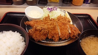 ある大手牛丼チェーンと同じ系列です。こちらは揚げ物専門店。時々、ワンコインサービスを実施しています。メニューの中に、ささみカツ定食がありました。付け合せのキャベツが多そうなので、これをいただくことに。ボリュームがあります。油きりの金網が敷いてあります。お椀には蓋が。牛丼チェーンより高級嗜好か。細かいところに差別化が。ささみは鶏肉の中でも、脂が少ない部分。ヘルシーな肉の中でも特にヘルシーです。私も好んで食べます。サクサクした歯触りで、お値段のわりには美味しいかも。胸にもたれることもなく、完食できました。ただ、ライスだけは、二口くらい残しました。本来なら、カツを残すべきですが、もったいないので(笑)揚げ物は避けているので、頻繁に行くことはないでしょう。寄るとしたら、朝定食を食べる時。それまで、しばしのお別れです。