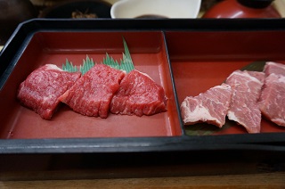 武田信玄の菩提寺、恵林寺。道を隔てた真ん前に信玄館があります。レストランと土産店を兼ね、ゆかりの鎧などが飾られています。ここで昼食をとりました。山梨特産!甲州ワインビーフと富士桜ポークのダブルステーキ。野菜をあしらった小さな鉄板で焼きます。油は使いません。ヘルシーですね。肉はちょっと固かったです。名物カニほうとう。かにの脚は出汁でしょう。かぶりつきましたが、身はほとんどなかったです。野菜の他に、ひもかわのようなうどんが。コシのある麺です。何といっても、カニ出汁のきいたスープが抜群。これが本日一番でした。向かって左が肉を焼く鉄なべ。右がほうとう鍋です。肉は手前のタレにつけて食べました。このタレは美味しかったです。炊込みご飯は薄味で、わが好みです。ただ、具が少ないのが残念。何が入っていたのか、わかりませんでした(笑)ビールが飲みたかったのですが、忙しくて頼む暇なし。欲求不満が残る昼食でした。