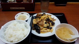 これはたいていの中華屋さんにありますね。定食、一品料理の定番です。過去に何回か食べました。印象としては、大衆的なお店のそれは、油っぽいということです。今回も非常にお安い店でした。お新香とスープが付いています。油は、ぎっとりとは浮いていません。唇がべたつくこともなく、食べられました。安いわりには、美味しいでしょう。問題は、ご飯でした。実に固いのです。チャーハン用に、炊いてあるのでしょうか。いつもはひと口くらい残すのが普通ですが、今日は3分の1ほど残しました。こういうライスを出すお店、たまにありますね。固いご飯を好む人もいるでしょう。が、年寄りには無理でした。主菜がギトギトしていないのはいいのですが、ご飯がこれでは。単品でビールのお供には合うかもしれません。