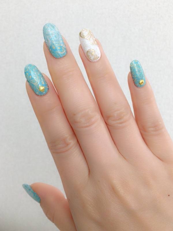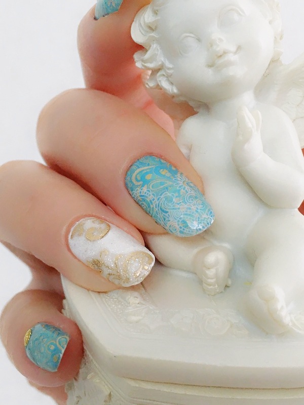 別のペイズリー(レース)のウォーターネイルシールを重ねています。