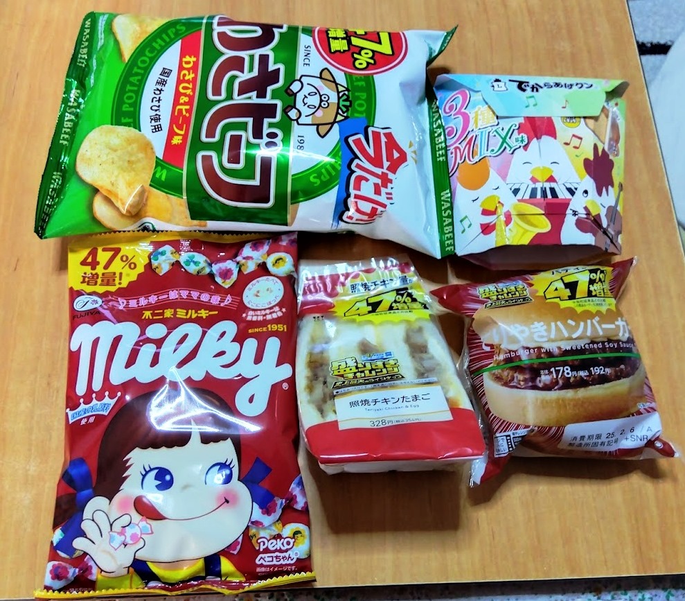 ローソンの盛り過ぎチャレンジその2です~。 でからあげクンの3種ミックス味です。外はレギュラー、中はレッド&チーズです。 中々大きなサイズです。ちょっとピリ辛かしらん。 プレミアムロールです。毎回の恒例スイーツです。結構なボリュームです~。 去年よりクリームが軽めで食べやすい気がします。 ミルキーです。大きいサイズの袋~。 100グラム以上の分量です~。個包装込みだから完全のその分量ではないですが。 今回はかなり色々あるので好みの物だけゲットすることにしています。来週は何かな~。