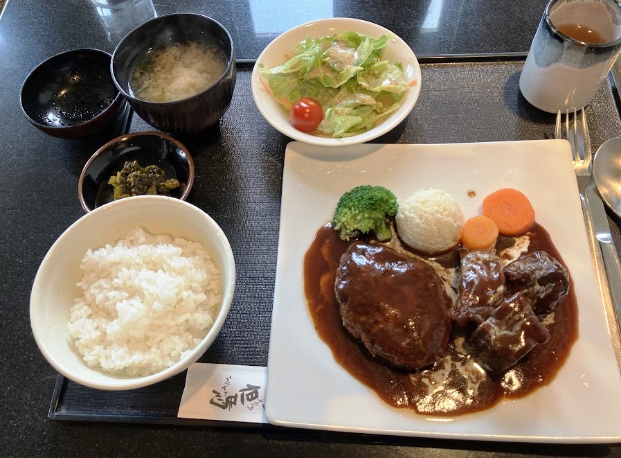 グルメリア但馬でランチを頂きました。3月いっぱいの限定メニューでハンバーグとタンシチューです。 タンシチューはスライスで無くてブロック状態で食べ応えがありました。本当はパンを選択したかったのですが、売り切れでご飯に~。パンを選ぶと汁物系がコーンポタージュになるのですね。やっぱりそれだからなのかな~。 ハンバーグは肉という感じです。タンシチューはほろっとして柔らかかった~。やっぱりここは美味しいですね~。