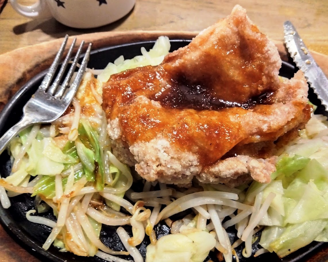 約一年ぶりぐらいに乱でご飯を頂きました。突き出しとカシスソーダーとカルピスチューハイです。前は三皿だったのが二皿になってる~。お魚を揚げた物の餡かけと豚肉のピリ辛味噌和えですね。 山芋の揚げた物です。ほんのりチーズ味の気がする。ビールが合いそうです。 マグロの一口かつ自家製タルタルソース添えと焼き魚定食です。焼き魚のインパクト~。ランチの時の定食は細かい小鉢が色々ついていましたが、今回は焼き魚で勝負という感じですね。 お腹一杯になってしまい、ここでお勘定になりました。前だと熱いお茶とプチデザートの葛カスタードが〆についてきたのですが、今回は無くなっています。やっぱりコストが大変なんでしょうな~。