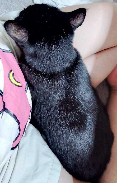 気温が変わったからか黒猫あんみつさんが膝に乗りました。 やっぱり朝が結構温度が下がったからですかね。最近はせいぜい足の間に来るぐらいだったのですが。猫はやっぱり寒がりなのですな~。