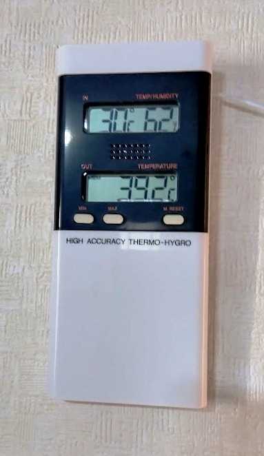 9月の半ばでまだ午前中なのにこの温度~。まあ二階のベランダの温度ではありますが。これは昼間はもっとやばくなるよねとヒーヒー言いつつ掃除と買い物を午前中に何とか済ませました。 そして午前中一階の温度計。あんま変わらない~。 もう9月半ばで本当ならそろそろ秋っぽくなってきてる筈なんですが思いっきり真夏ですがな。どうなるんでしょうな~。