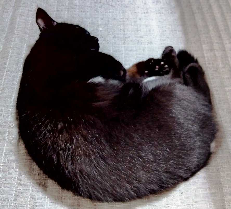 猫が丸まって寝る寝相はアンモニャイトと言われています。 微妙に丸まりきっていないアンモニャイトですw。熟睡してないからかな~。ぐっすり寝てるときっちりしたアンモニャイトになる率が高い気がします。