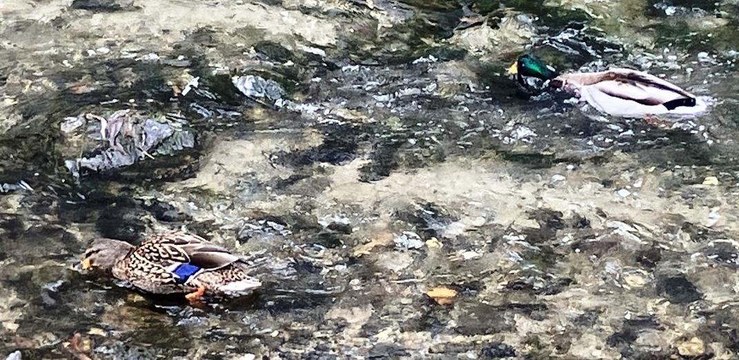 鴨がいます。流れに乗ってくる何かを摂取している模様。
