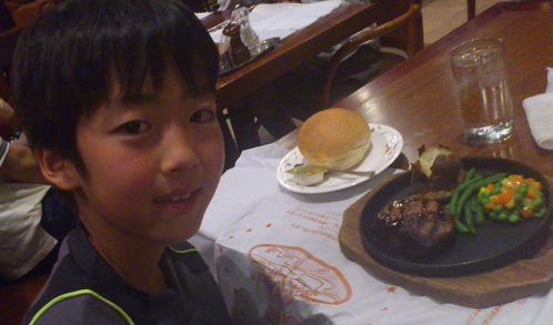 こどもの日誕生日 を兼ねて今日は練習の後、HungryTigerへ今までハンバーグだったのに、今年はステーキを完食したしゅんパパのステーキも”ちょっとちょうだい”と頂いていました よく食べるようになりましたこれで我が家のGWが終わった・・・気持ちになりました