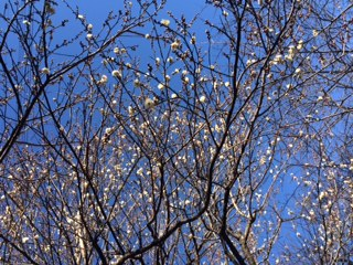 白梅、ほぼ満開~先週まで、暖かかったからか・・・寒空に映えます