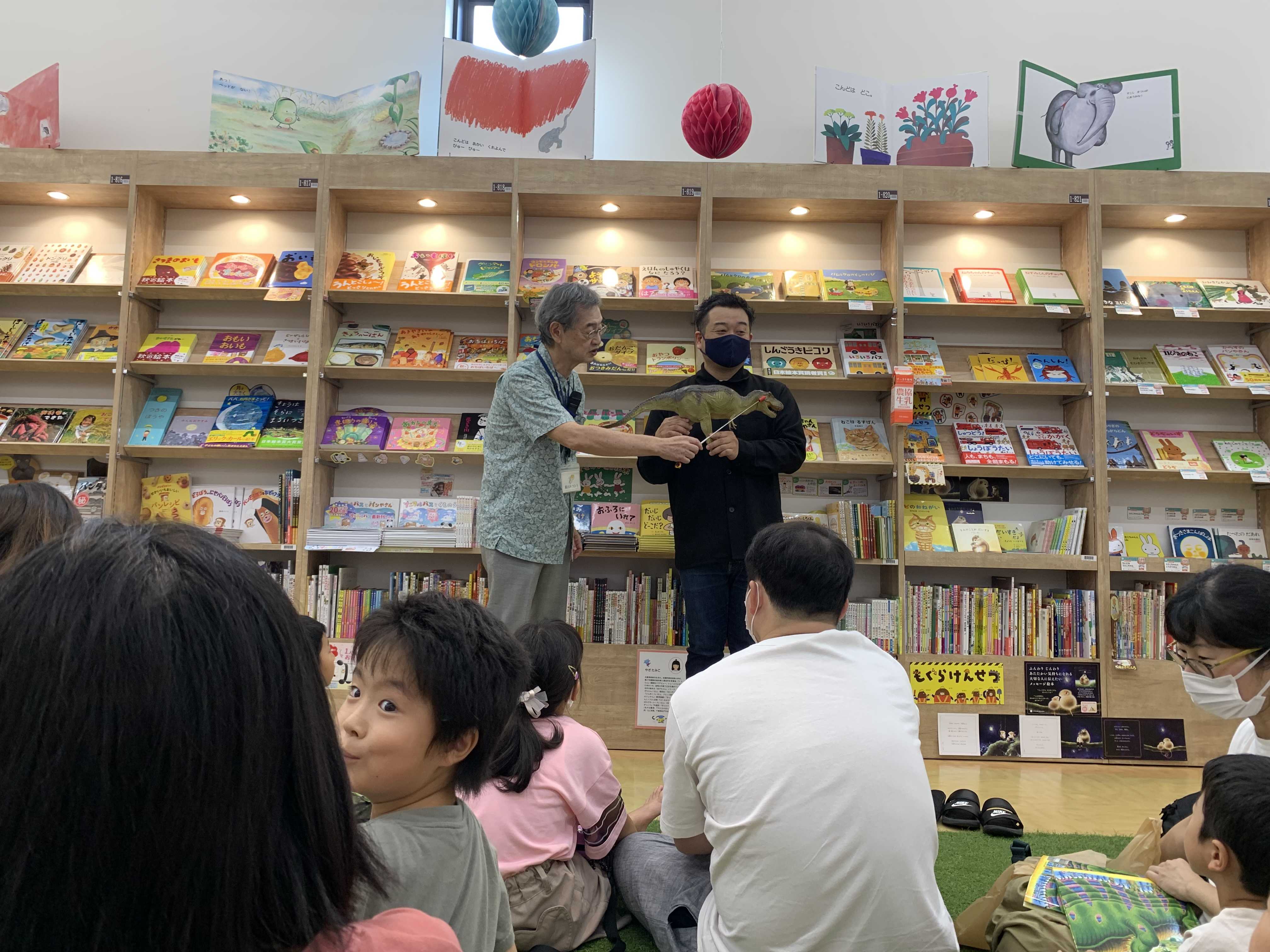 この前の日曜日に、近所の本屋に絵本作家の黒川みつひろ先生がやってきました。「恐竜トリケラトプス」のシリーズを始めとして数多くの絵本を発表しておられる方です。うちの娘が恐竜好きで、当然このシリーズも大好き。図書館でよくこのシリーズ本を借りています。このシリーズだけで40冊以上出ているようで、読んでも読んでも終わりません(^_^;しかもこの絵本の影響で、娘は寝る前にトリケラトプスの話をしないと寝なくなりました。その話も、何故か毎回登場するトリケラトプス達がケンカをするのが条件で、私がアレンジして毎回違う話を二次創作しないといけないのです(ーー;)もっと言えば、結局それで話に興奮して寝なくなったりして、毎晩大変なのです(@@;)というわけで、こんなチャンスは滅多にないですから、作者に一言文句・・・じゃなくてお礼を言いに行かないといけません。娘を連れて行ってきました。開始前に本屋の「恐竜トリケラトプス」のコーナーを眺めていると、いきなり背後から「こんにちわ(^^)」と話しかけられたのが、なんと黒川みつひろ先生その方でした。出会い頭にいきなり文句・・・を言うわけもなく「今日はは宜しくお願いします(^^)」と娘と一礼。6月に出た新刊をレジに持って行って、早速購入しました。そしていよいよ始まる黒川先生のお話会は、50人ほど集まり大盛況。意外だったのは、私の娘もそうですけれど、むしろ女の子の方が多い気がすること。今のご時世、男の子も女の子もないんですね。まずその最新刊の作者ご本人による読み聞かせ。作者本人の読み聞かせとはなかなか豪華です(^^)それが終わるとティラノサウルスの解説や、先生が所有されている化石などを見せていただきました。最後はサイン会。私も「1ページ仕上げるのにどれくらい時間がかかるのか」など色々と聞きたい話があったのに、娘が恥ずかしがって「あっち行ってて!」などと私を遠ざけるので、私は黒川先生とお話することなく終了。まあいいですけれどね(ーー;)また色々な先生に、我が町にやってきてもらいたいものです。ガオ~!