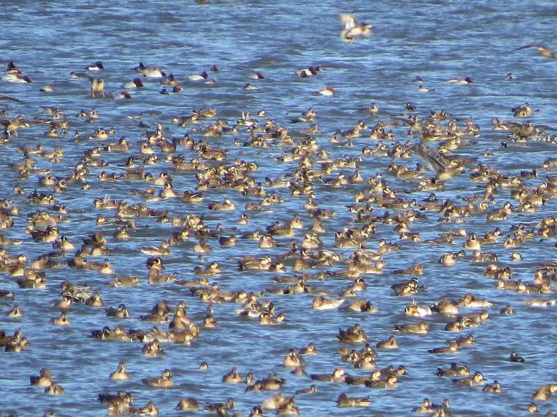 10月に姿を見せて以来、都内水元公園にマヒワが滞在しています。11月に入り個体数が減少したとの報告が多く見受けられていますが、今日現地を訪ねましたら少なくても100羽以上の群れを目撃しました。行動範囲がかなり広範囲になっていて北は水生植物園付近から水産試験場跡地までのエリアに群れで移動し、アキニレ、ハンノキの実をついばむ姿を目撃しました。マヒワは、朝鮮半島の気温が高めの年には日本には飛来する個体数が少ない可能性が研究者が指摘しています。偏西風の蛇行で朝鮮半島や日本が平年並みの寒さの今年のようなシーズンは飛来する個体数が増えているというが考えられます。(水鳥の観察)・バス停桜土手近くのごんぱち池、水産試験場近くの水域で複数のヨシガモが羽を休めていました。雄生殖羽、雄エクリプス、雌の姿を観察できました。・ヨシガモの近くの水域でヒドリガモの群れと一緒に行動していたヒドリガモとオナガガモの交雑個体(頭の模様はアメリカヒドリ似、上面はヒドリガモ似で中央尾羽が伸びている個体)を見つけました。・水面で休んでいたホシハジロの中に、水面採餌している個体を観察しました。動物質の餌を採るのが多いのですが、近年では人の与えるパンに餌付くものもいると聞いており潜水ガモだから潜って採餌と思っているとそうでないというケースのひとつです。・水面にカイツブリ、カンムリカイツブリ、ハジロカイツブリの姿がありました。ハジロカイツブリは虹彩が赤色で成鳥冬羽と思われました。・その他、キンクロハジロエクリプス、ユリカモメの姿も見つけました。(写真)2025年11月13日撮影