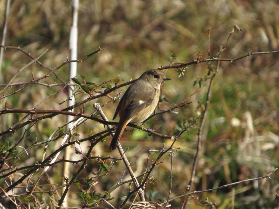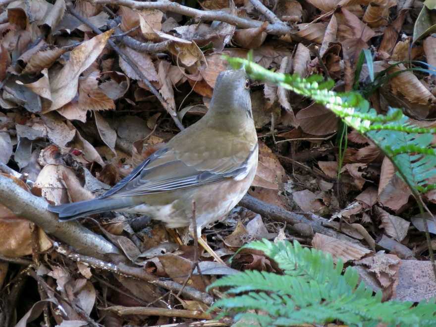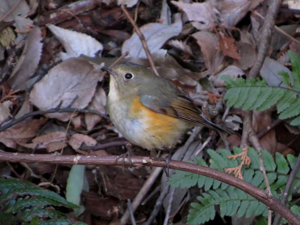 ルリビタキのほかは、斜面で落ち葉をひっくり返して餌を探すシロハラ、