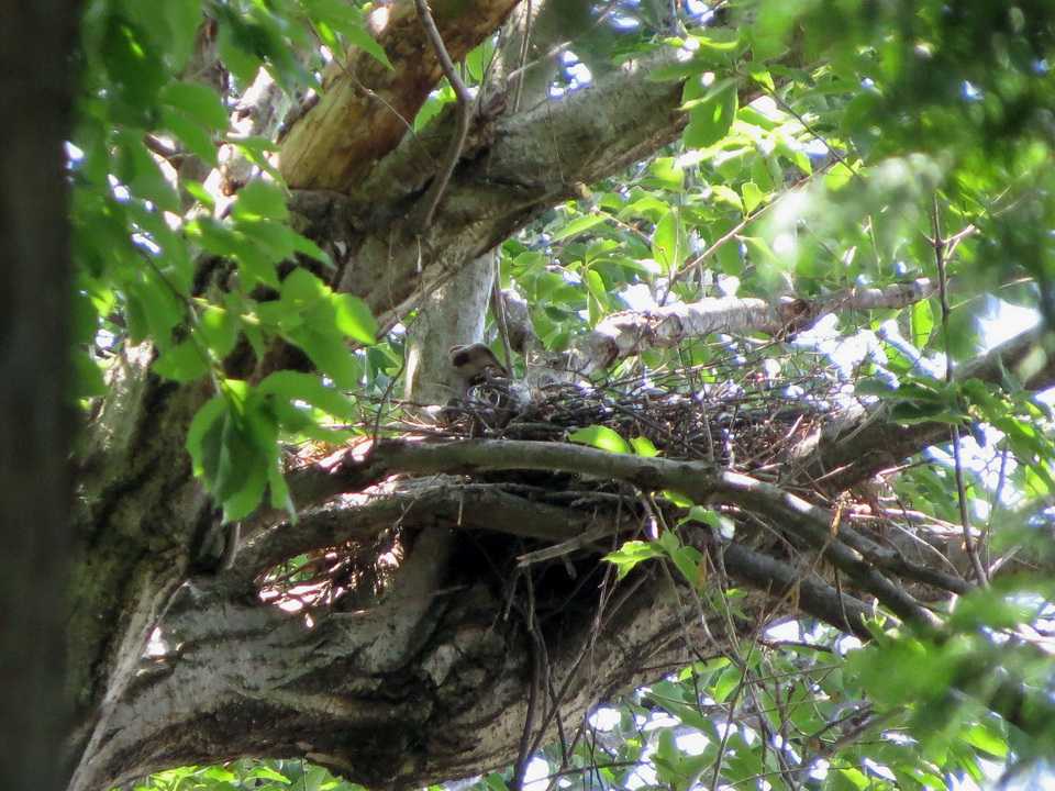 木に移動しました。動きを見ていると、枝を折ってから巣の方向に渡去。何度か繰り返して