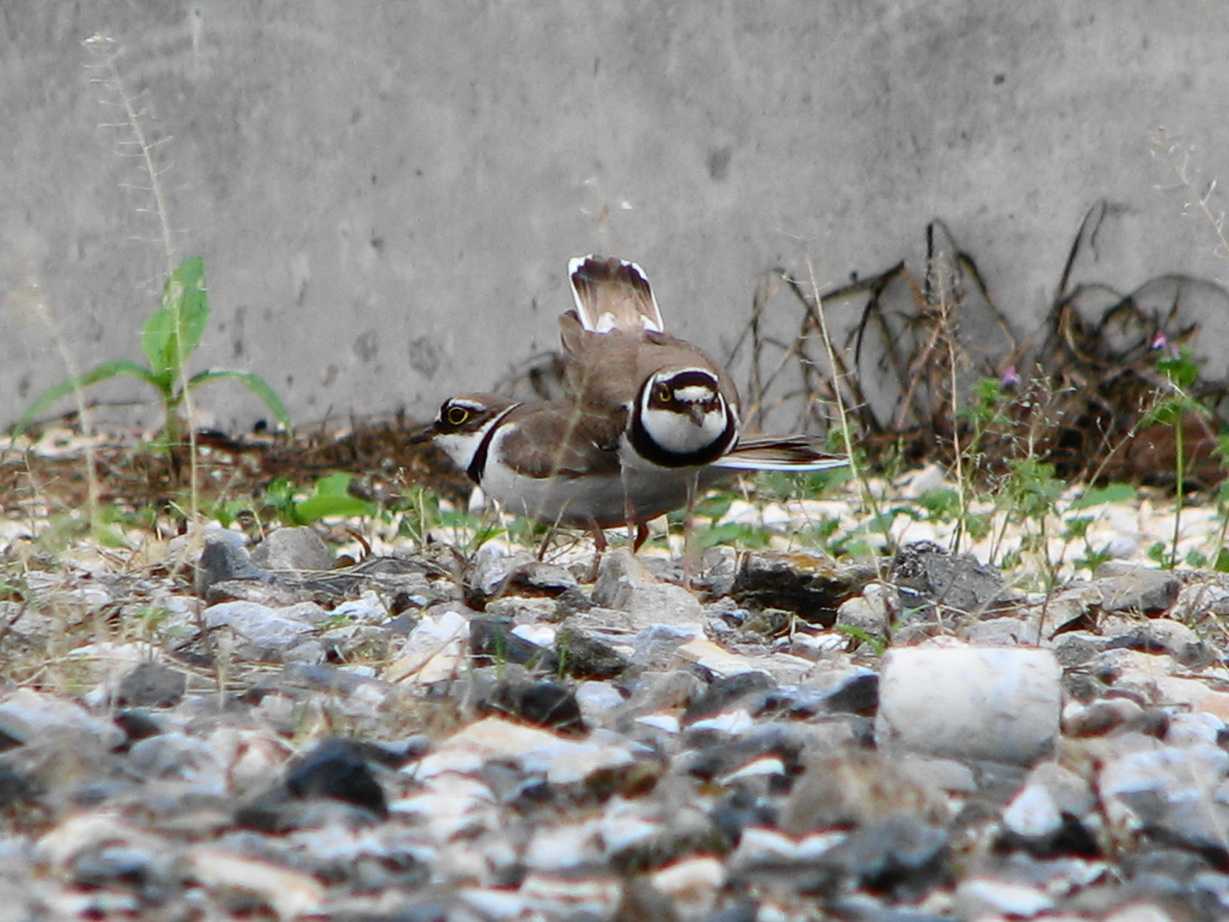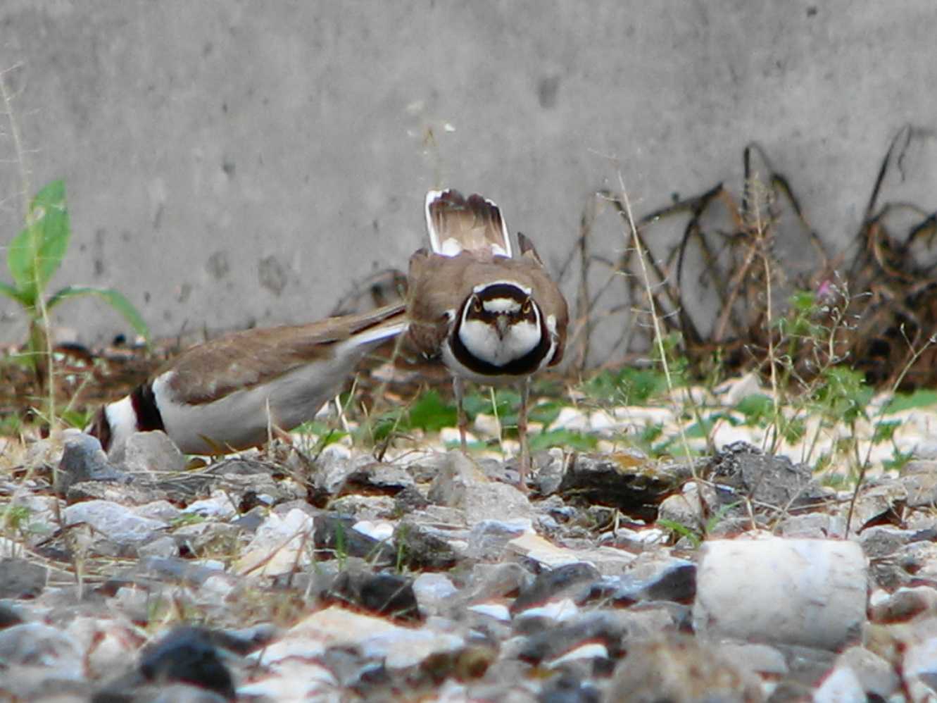 これからコチドリのペアは、体を水平にして互いに並走したり、胸を張って相対したりする場面が