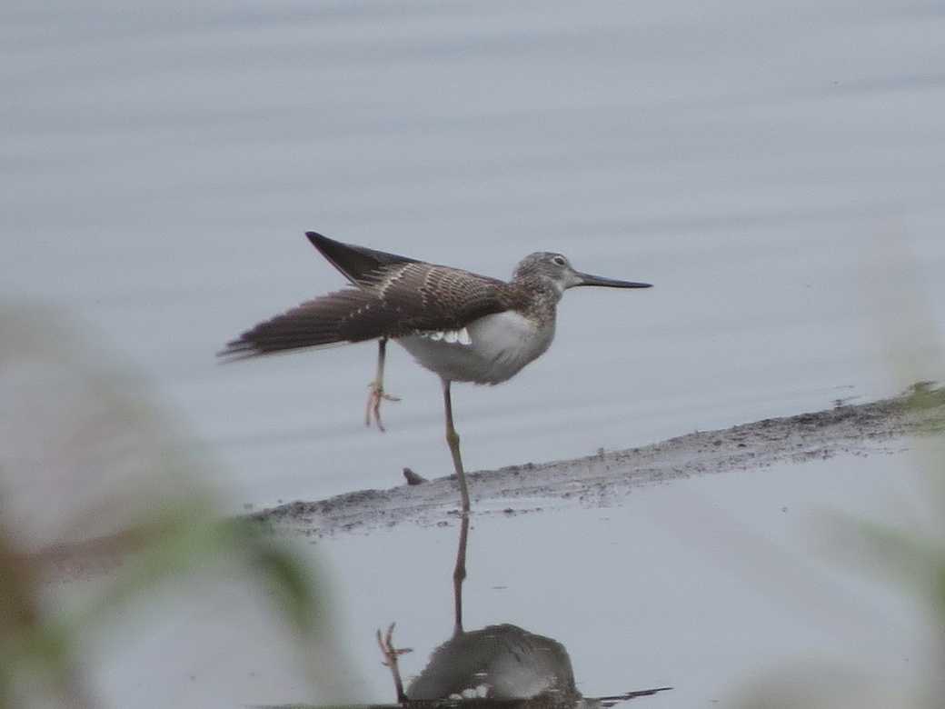 歩いていたアオアシシギを発見しました。上面が褐色がかり各羽縁が角張っいる