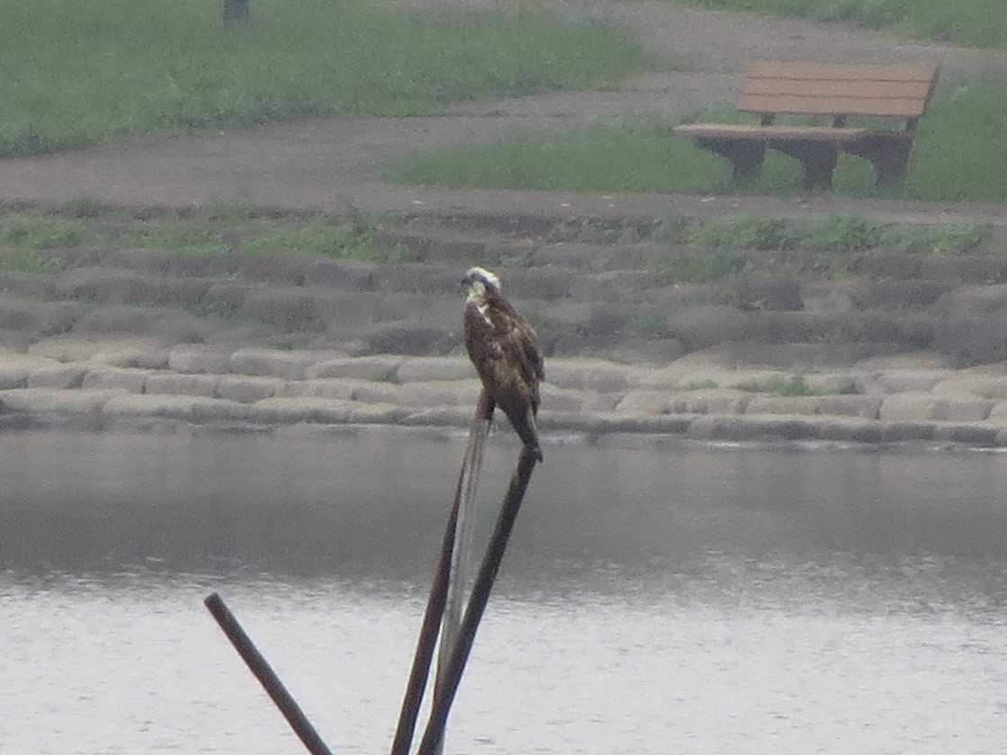 スタート地点の柏市側の水面の杭にミサゴが止まっている姿を発見、