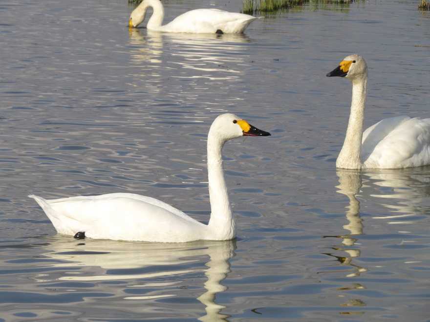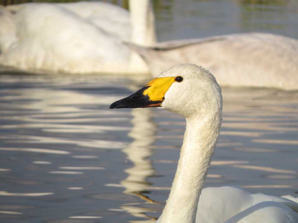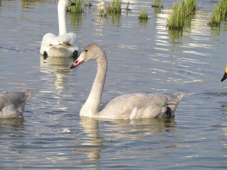 渡来初期の幼鳥は、上くちばしの鼻孔周辺の赤色でもある程度オオハクチョウと