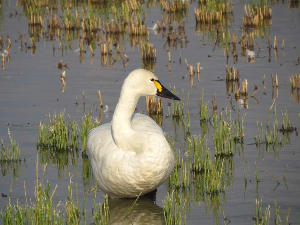 現地に到着した14時すぎでは、オオハクチョウ8羽、コハクチョウ178羽。