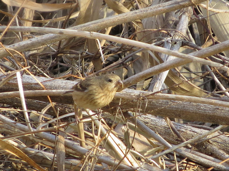その後、高い葦がたくさんあるエリアで待機していると、シジュウカラ、メジロ、ジョウビタキが登場し、葦の中からピッポッと今季初のベニマシコの鳴き声。