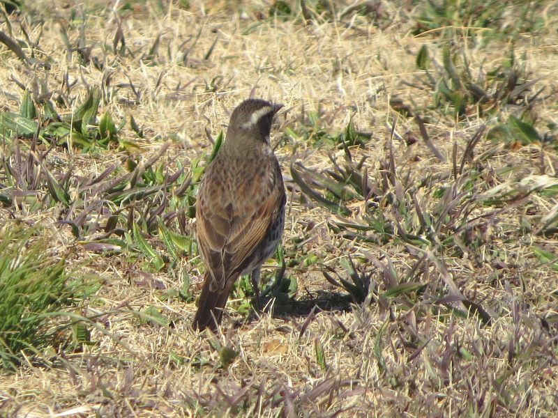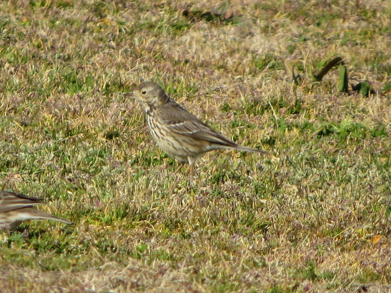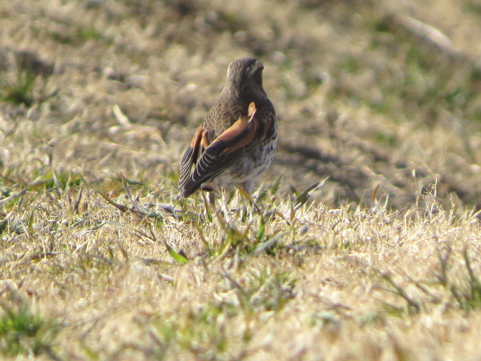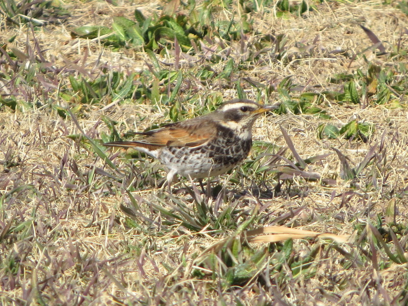 このほか、ツグミの翼の赤褐色味が鮮明な個体、そうでない個体、20羽もの群れでグランド上で採餌していたタヒバリの姿を観察しました。