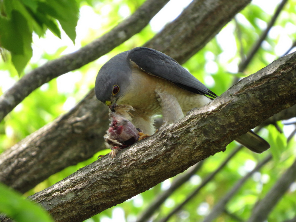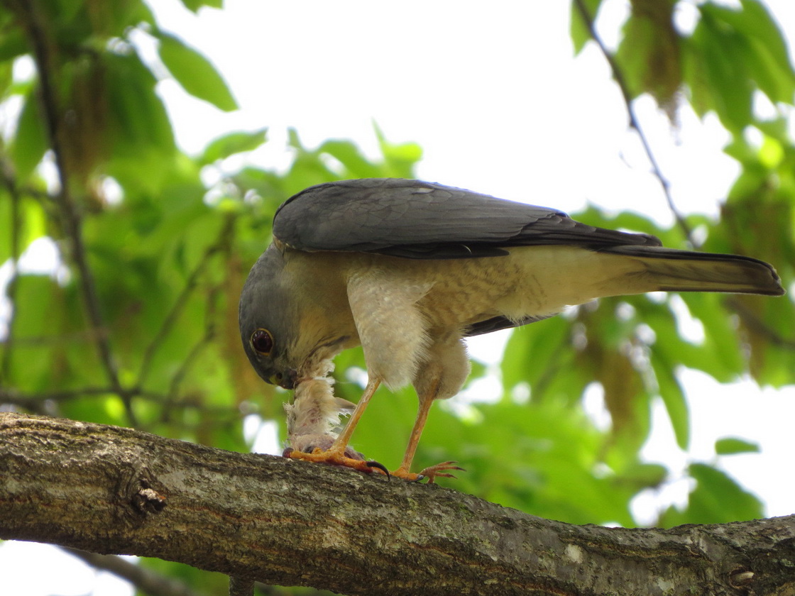 待機しているとツミが枝に降り立ちました。虹彩が濃い赤色で雄個体。